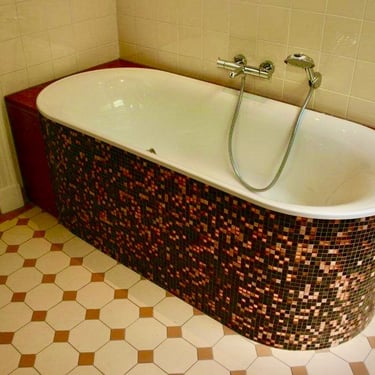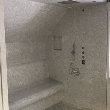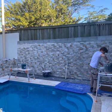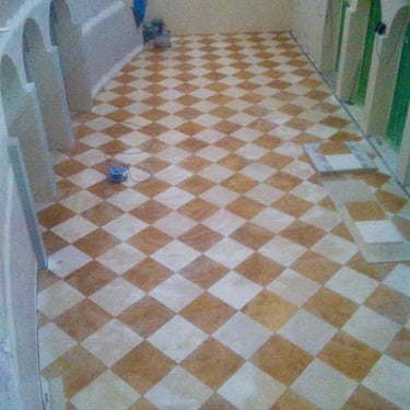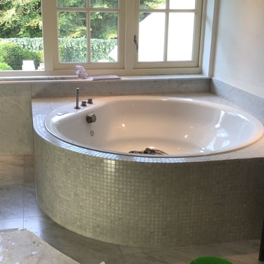 We have completed numerous projects utilising various types, sizes, and patterns of natural stone, as well as installing slabs, both ceramic and marble, measuring 3.50m x 1.30m. Often, these are combined with mosaics, glass, natural stone, or even gold plated mosaics.