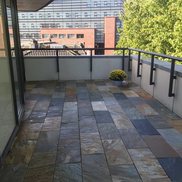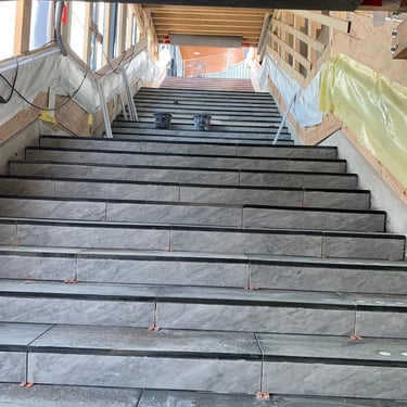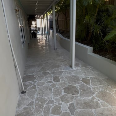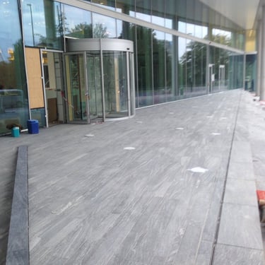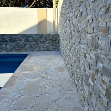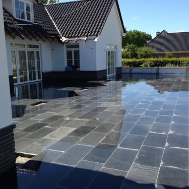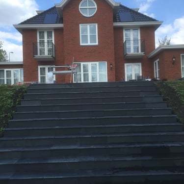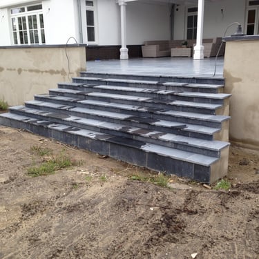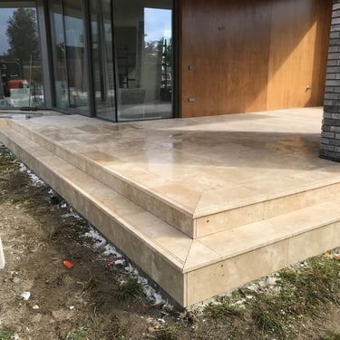 This project featured nearly 1000 m2 of natural stone, encompassing all the outdoor patios and stairs as well as the interior flooring on two levels and the staircases.